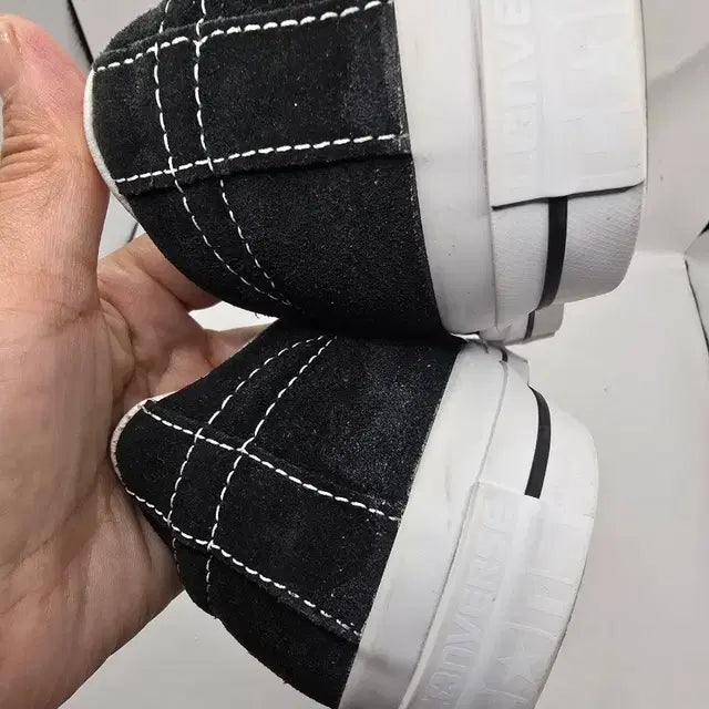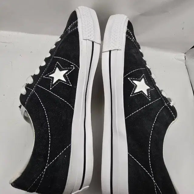 Converse One Star 스웨이 ✔️ 사이즈: 260 ✔️ 상태: 중고 A급 (착용감 거의 없음 / 밑창 마모 적음) ✔️ 컬러: 블랙 × 화이트 ✔️ 특징: 루나론 인솔 장착으로 편안한 착화감, 심플+빈티지 감성드 블랙